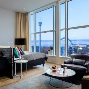 Halvvägs mot himlen, i toppen av Gothia Towers, ligger Upper House. Ett hotell i hotellet, med skandinaviskt vilsamma rum och sviter med enastående utsikt över Göteborg.
